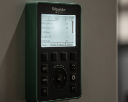 Attraverso una valvola di energia installata registriamo diversi dati come le temperature di entrata e di uscita dell'acqua, le temperature di entrata e di uscita dell'olio dal compressore e l'energia termica effettiva o totale recuperata.